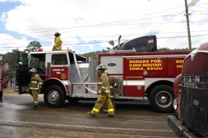 Members of Iowa MOST whose clubs were involved in securing these vehicles and equipment for Huehue were invited to the fire station for a celebration in recognition of Rotarians’ efforts. At the program we saw photos of the firefighters fighting fires and doing rescues. One of the photos showed a firefighter in a fire emergency without a helmet. We were told that would never happen again thanks to Rotary. The first official need for the rescue vehicle was on our second day of our mission and we were able to document the use of and the need for the contributions from this ongoing partnership.