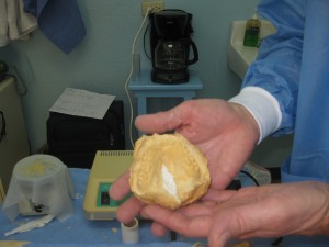 Three patients were seen and molds were taken from their mouths. The dentists on the delegation, Steve Aquilino and Bill Gates, worked fervently to mix the plaster and place the molds in the mouths of the patients. The following step was to make the actual obturators. The dental team will meet the patients tomorrow (Tuesday)
