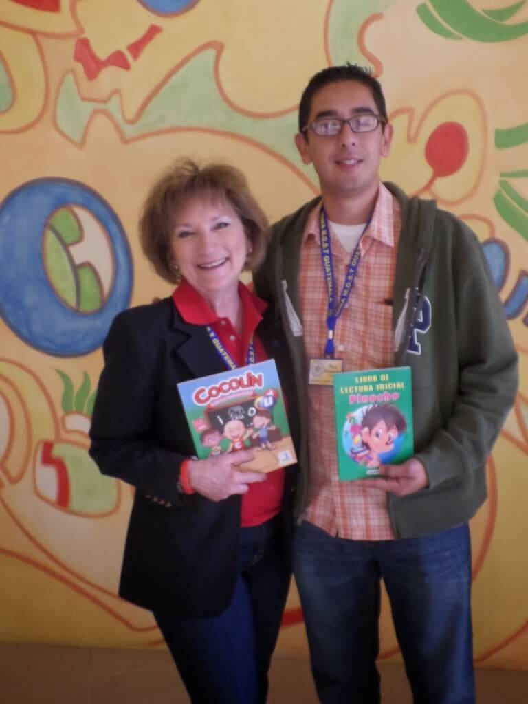 Rotary District 6000 Rotarians contributed generously to a book fund established by District Governor Jacque Andrew. While in Guatemala, DG Jacque purchased books using money from the fund with the assistance of Salus hospital friend, Rosanna De La Roca, for a village school served by the Casa Colibri clinic. She and Casa Colibri director, Paco Fernandez, also hold samples of the books.