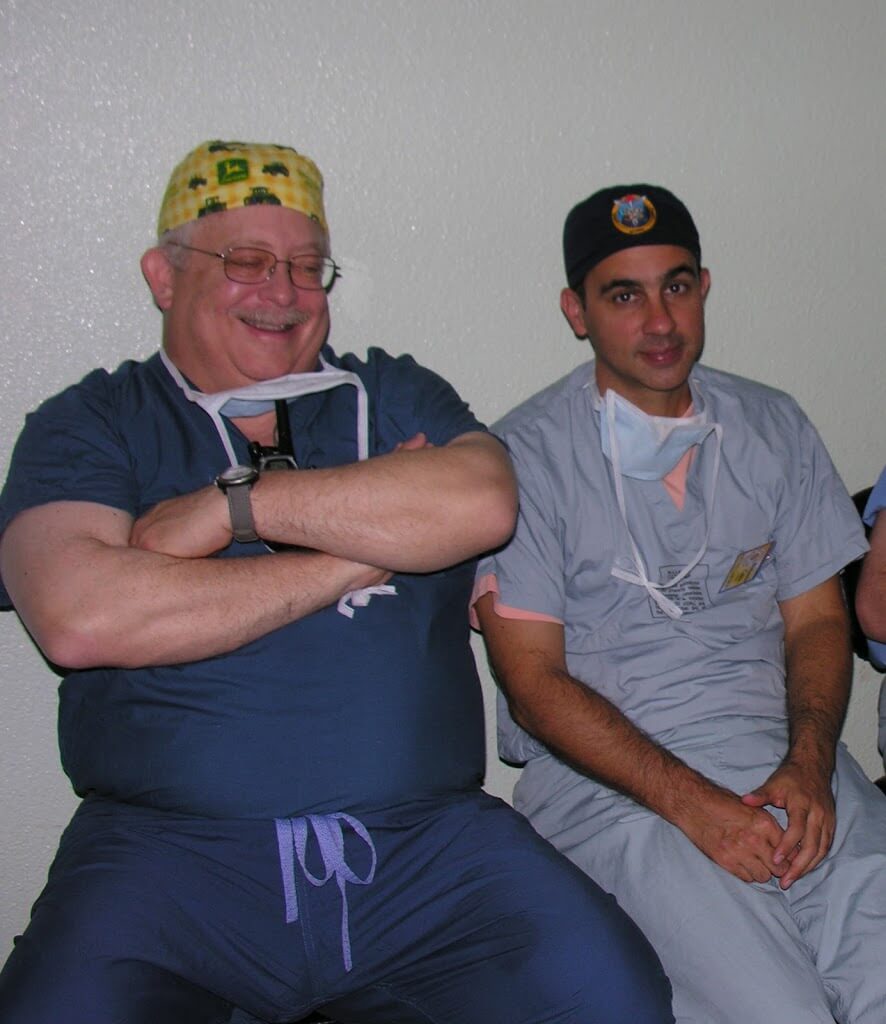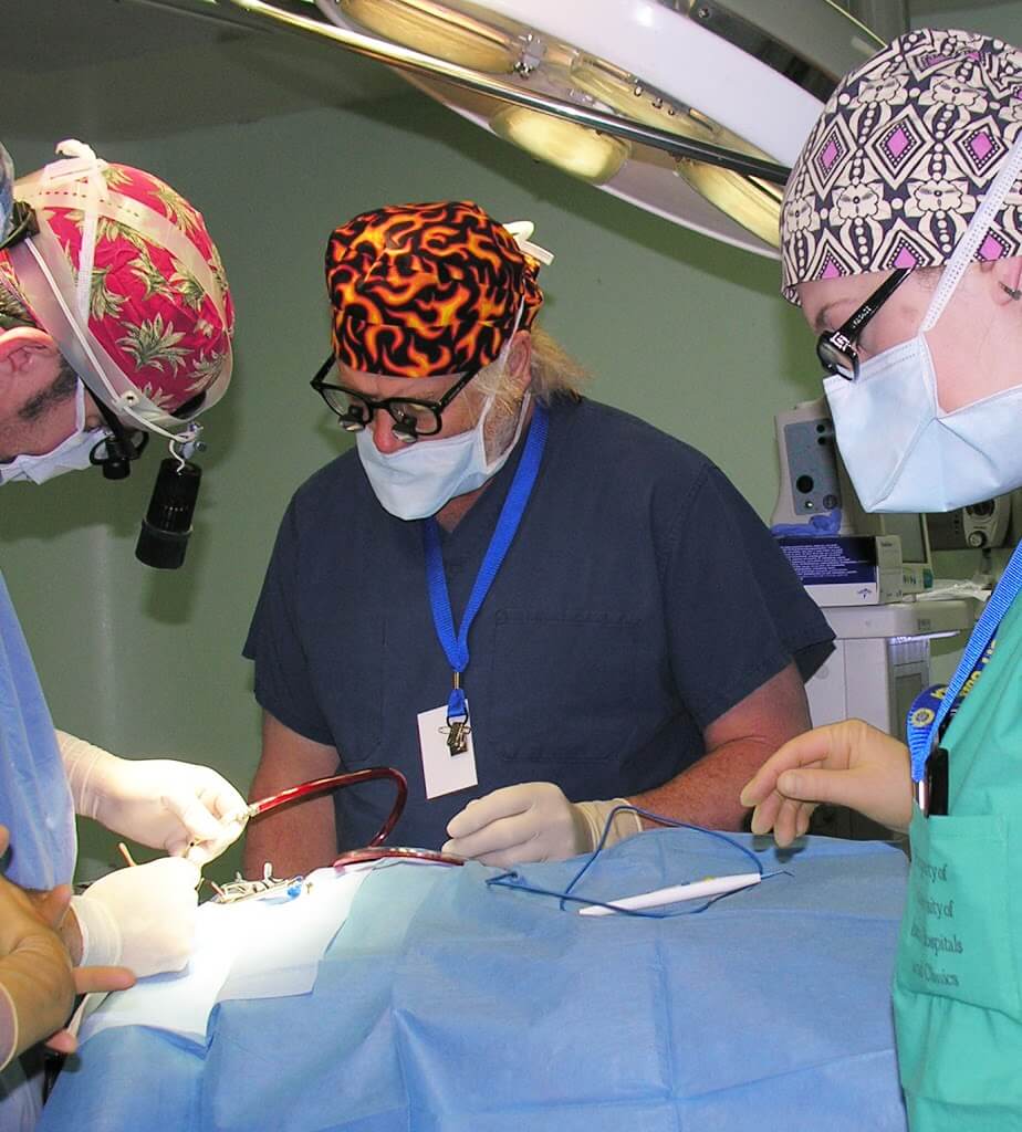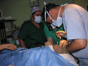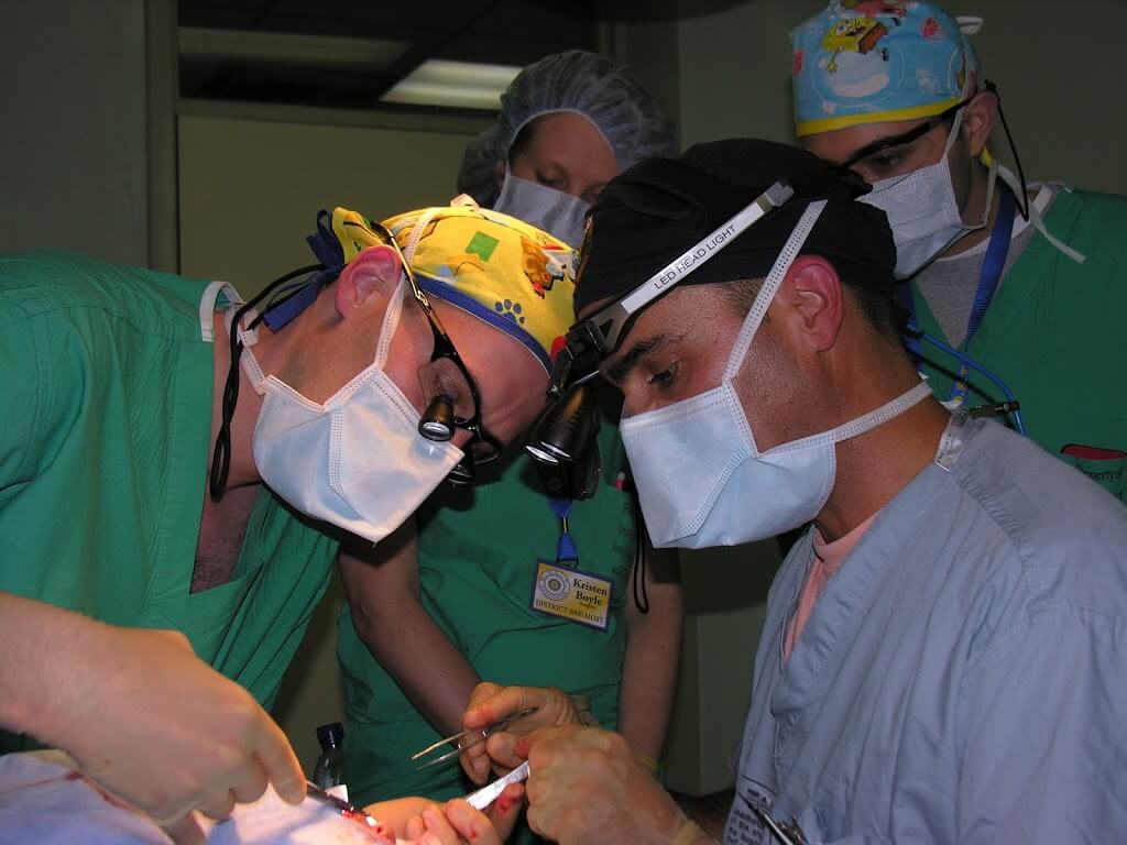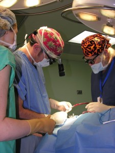 | Ben Cable, right, in surgery |